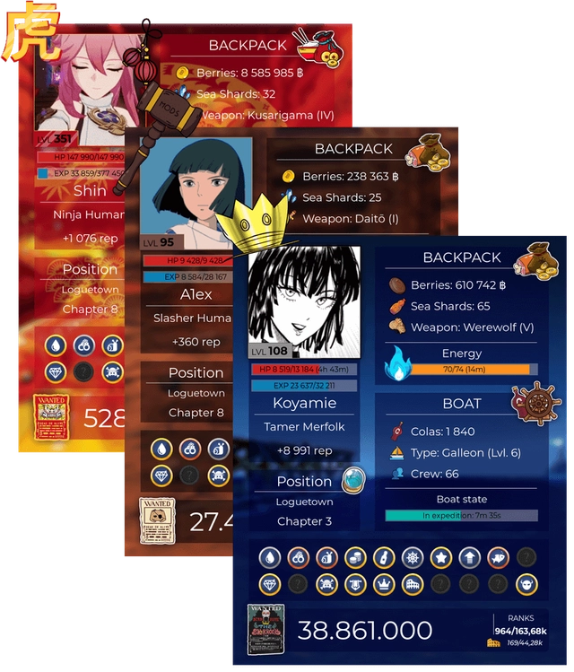 🏴☠️ Embark on the ultimate One Piece adventure! Choose your class and race, then set sail to become the Pirate King. Battle fierce bosses, complete epic quests, catch Den Den Mushi, compete in the Colosseum, and explore the Grand Line with fellow pirates!