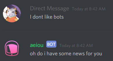 Aeiou is a bot for discord, designed to funpost. Aeiou provides an array of fun games and commands for you and your server.