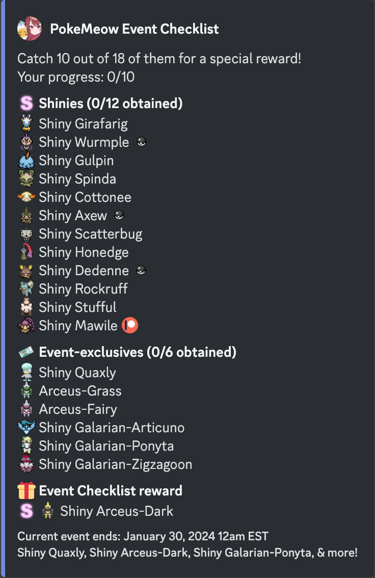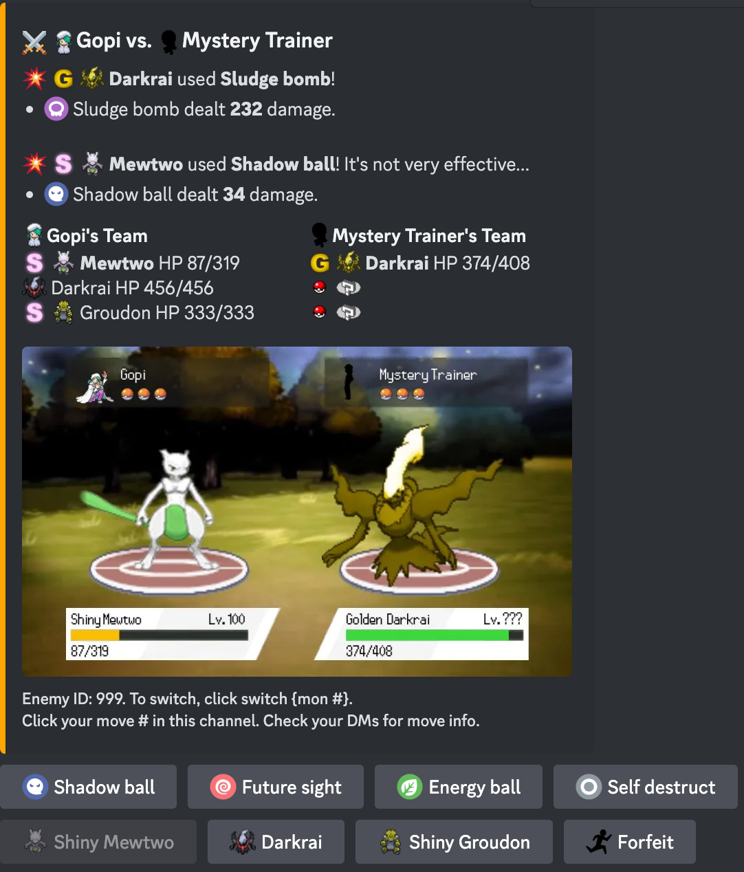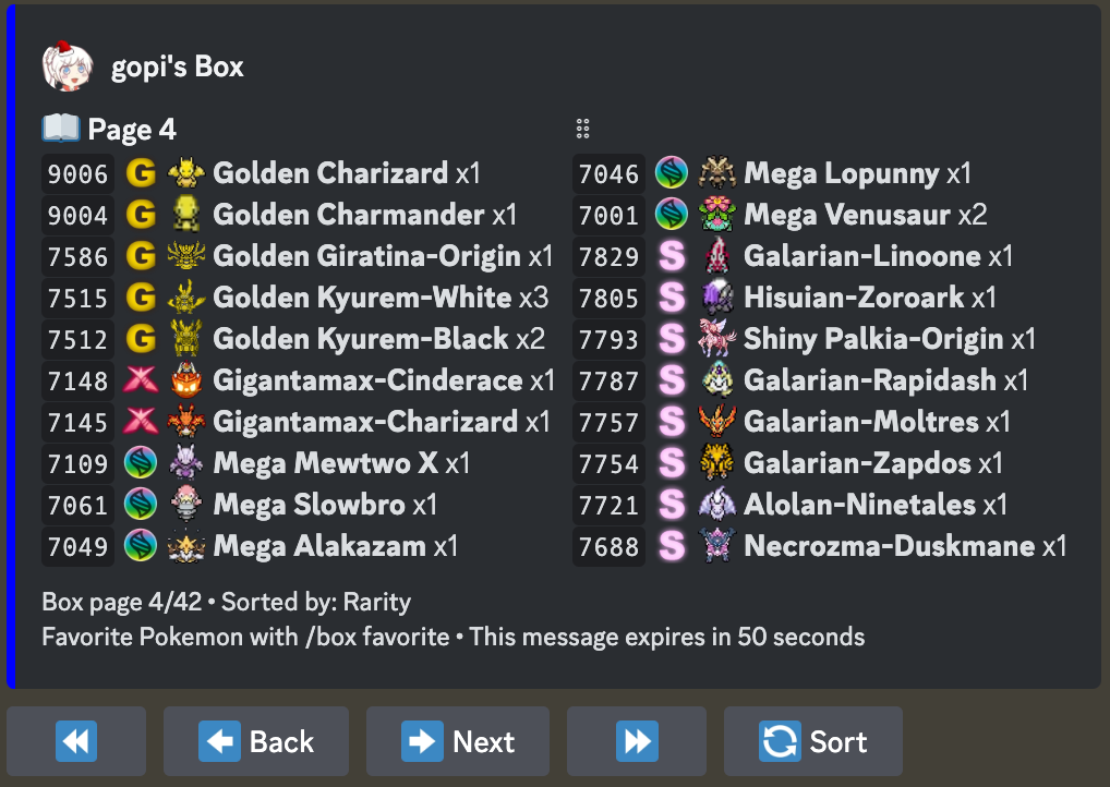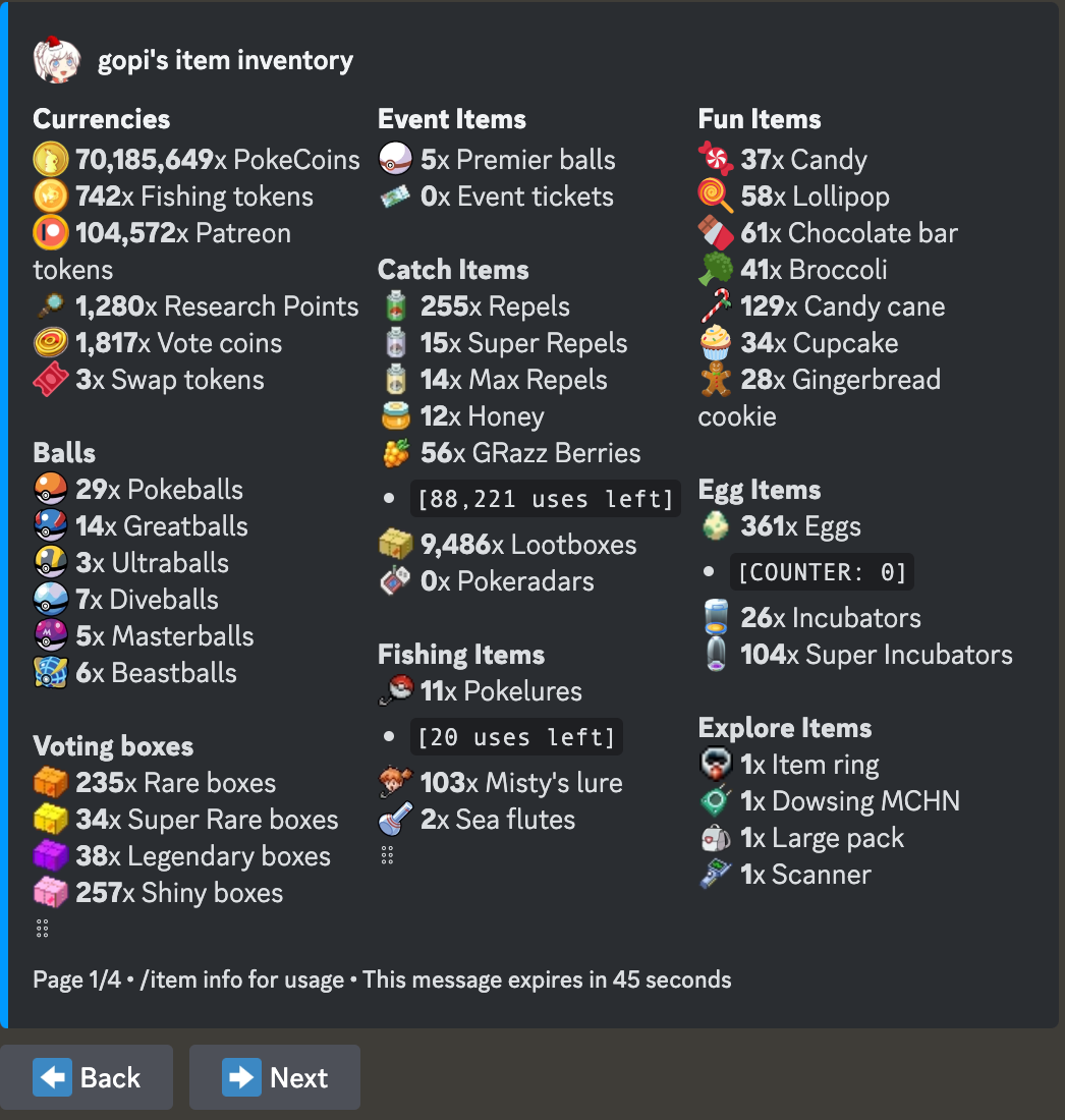 Honestly one of the best discord bot games I have ever played. Great concept based off a already great base game. The only issue I have with it, is that it is unforgivingly difficult to finish any sort of event as a casual player. You have to drop countless hours OR get lucky to be able to get any of the rare golden pokemon. There are times you can play for 12+ hours and not get even a single piec...