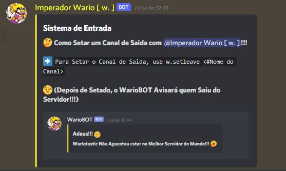 Voltando em Diversão o WarioBOT Possui Comandos Muito Engraçados que Prenderão Atenção do Usuário!!! (Exemplos Abaixo)