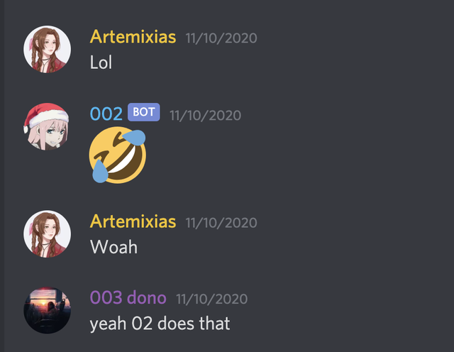 So zero-two (code 002) is a cool character from the anime, "Darling in the Franxx". I totally made this for fun, but it's awesome seeing people add her to their servers! I think the best part is having her reply to your messages!