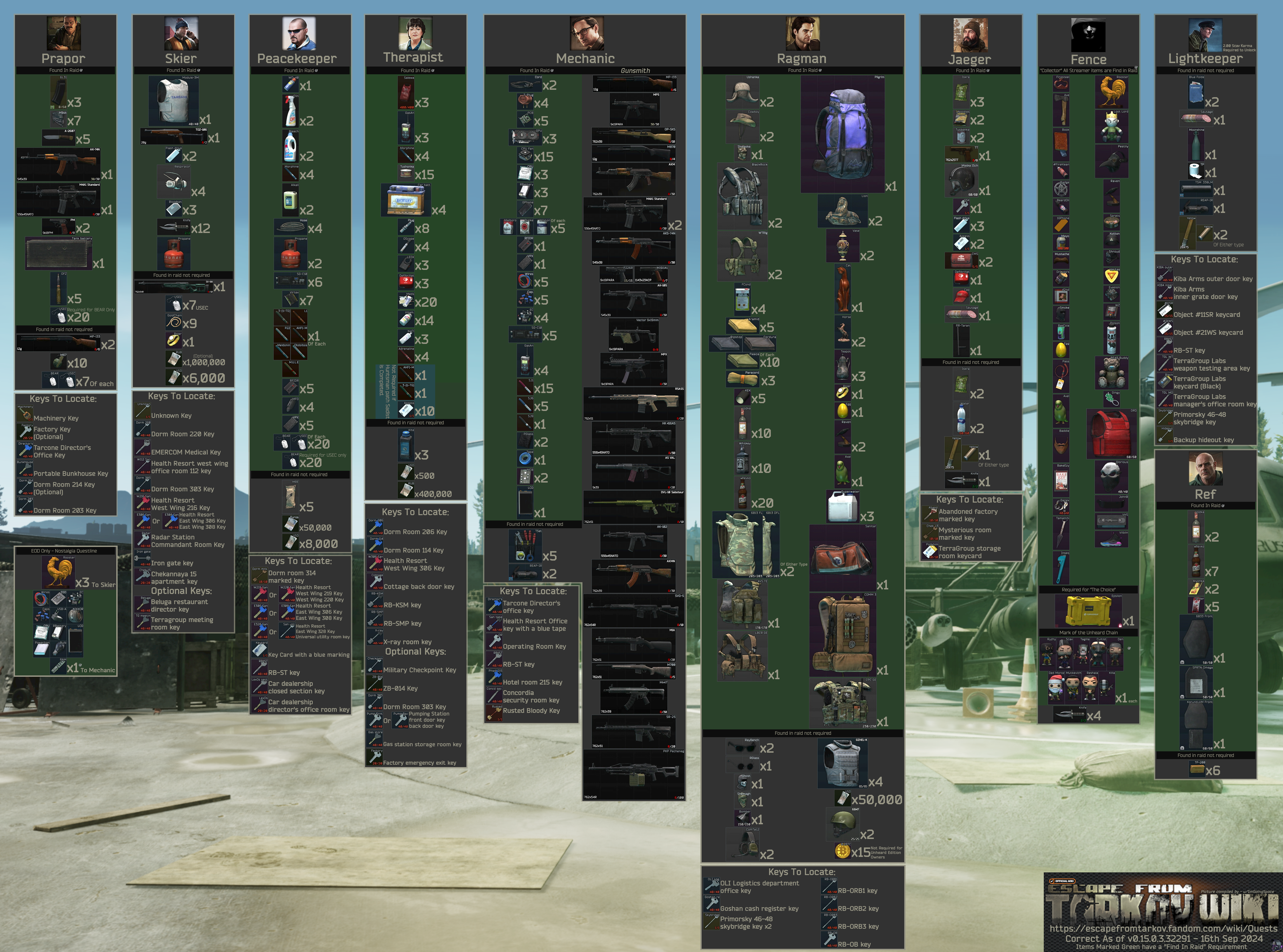 Tarkovia bot is a Discord bot for Escape from Tarkov. It can be used to access wiki pages and other common resources, such as an ammo chart, useful keys, and a quest items image.