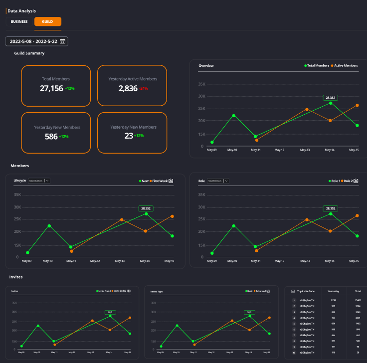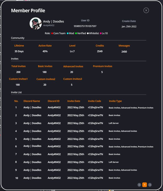 Check members' profiles (roles, invite list, register date, join date, active rate, messages) in our user-friendly admin panel, and batch manage them in one click.
