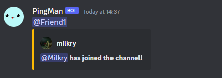 Given a voice channel and a list of people, PingMan can notify you whenever someone from that list joins the given voice channel.