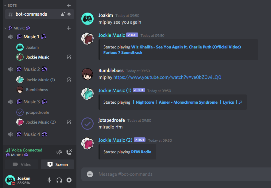 Don't have a big server or don't need more than one music bot? No problem, you only need to use one of the bots, they all come feature packed like no other music bot, Jockie Music truly brings a new experience to the Discord music bot world!