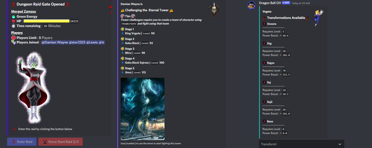 #1 Most Under-rated Discord bot! You are missing out! Raids,Fusions Transformations,Shenron,Market,Tower Bosses,Team Battles & more!