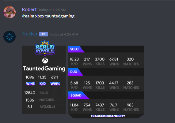 Tracker is a player stats bot for multiple online video games. Track your or your friends stats via simple commands on your Discord server!
