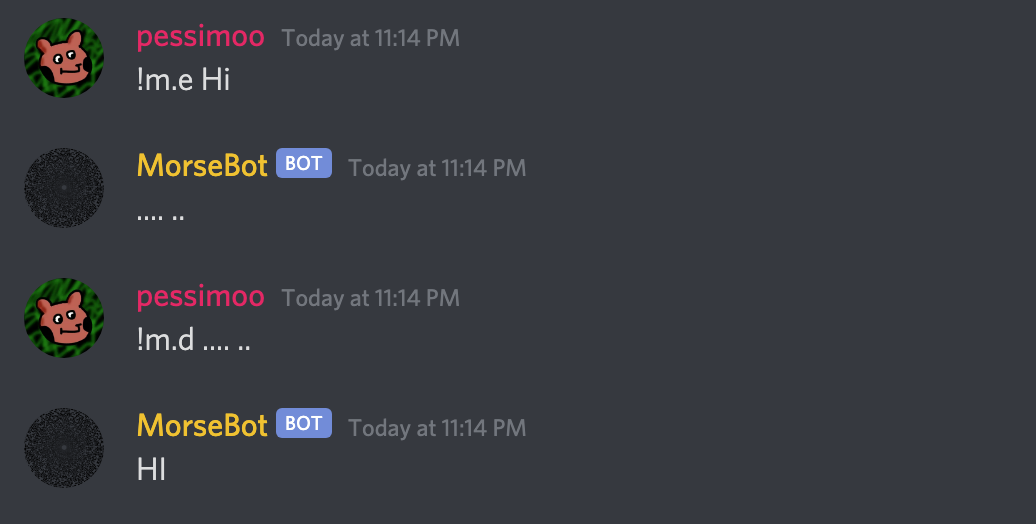 A Simple discord bot for encoding and decoding morse code. It's a Morse Bot!