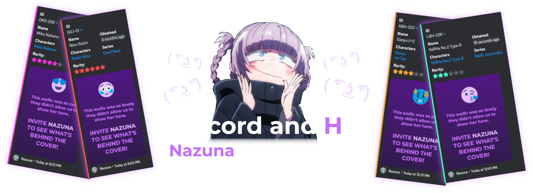 What are you waiting for? Invite Nazuna and start collecting waifus with the /nroll command!