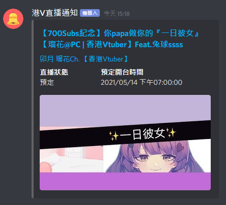 hkv!setup [可選: 頻道](註:你需要管理頻道權限)希望大家可以多D關注香港Vtuber :D