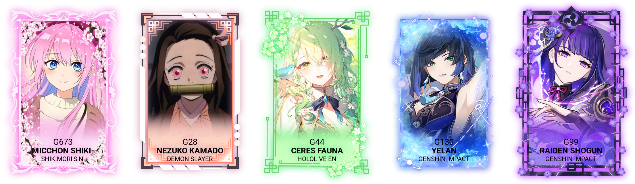 ✨ Top Discord Bot ✨ 50,000+ cards ✨ Multilingual ✨ Anime Manga Kpop Webtoon Genshin Games Guilds Memes Music Emotes Art Gacha