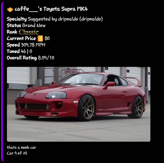 The best and most interactive discord bot ive ever played, and used the most. Alot of nice people who are sometimes willing to sell/trade cars. spent a few thousand on it also and never regretted a single penny. I recommend playing this bot whenever you have free time, make new friends etc. 100%
