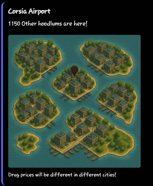 one of the best discord bot game ever. i called it the 'GTA' of discord. i imagined what features would be added in the future. this game has so much potential.