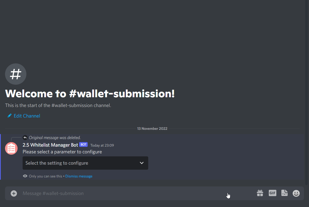 A community supported NFT whitelist manager bot, free for NFT creators! Collect wallet addresses for whitelists and giveaways. Supports any chain.