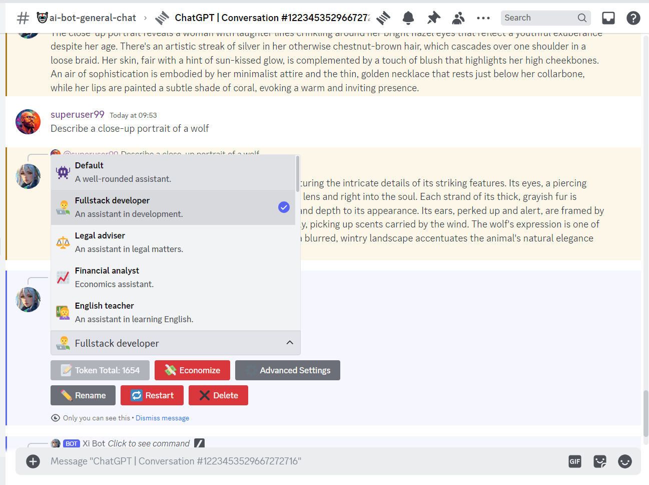 A great bot, one of the best AI assistants at Discord. There are failures, but they are quickly corrected. Support responds quickly. I rate it at 5 stars, with a reserve for the future.