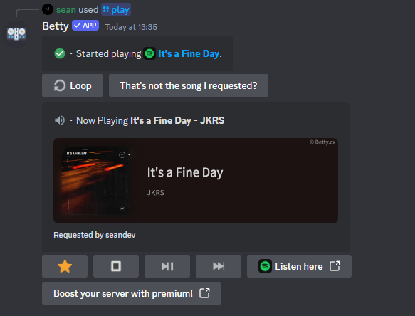 Betty is the perfect match for either directly starting and playing music or setting up an advance Discord Music bot.