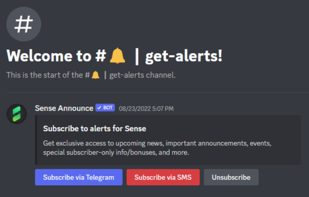 With Sense, you can enroll your Discord community in a better way to receive important announcements: via text or Telegram.