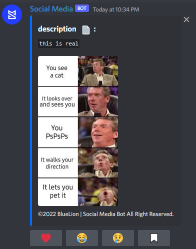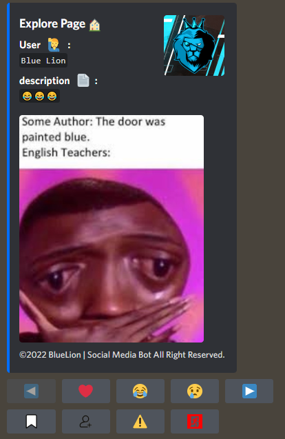 socail media bot Combines most features of [facebook - instagram - tiktok] but all of it in discord and connect all servers together