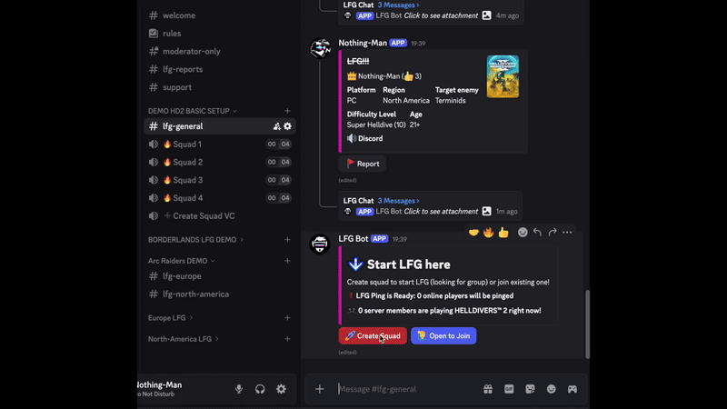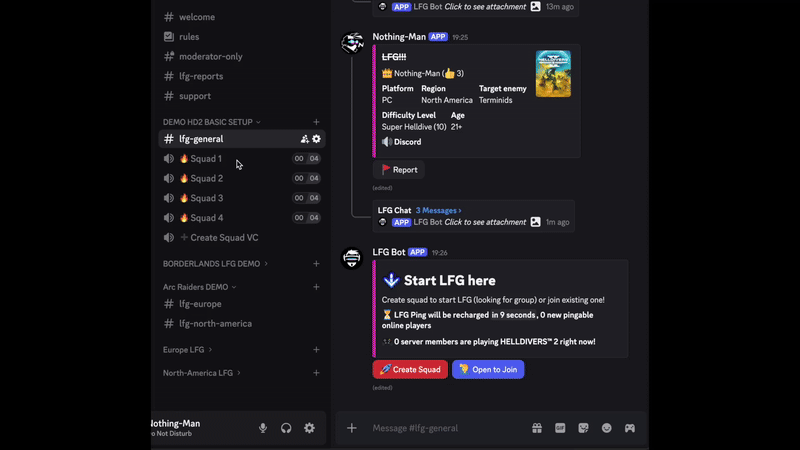 I have been utilizing this bot and all it's features for the past week. It does what it says it does. At first I thought it might only support the main popular games like MOST of the LFG bots available. Usually you are stuck with either 6 main games or a vague "Just play together" system with LFG bots / features. This bot allows you to pick the games you want to create LFGs for, join crossserver ...