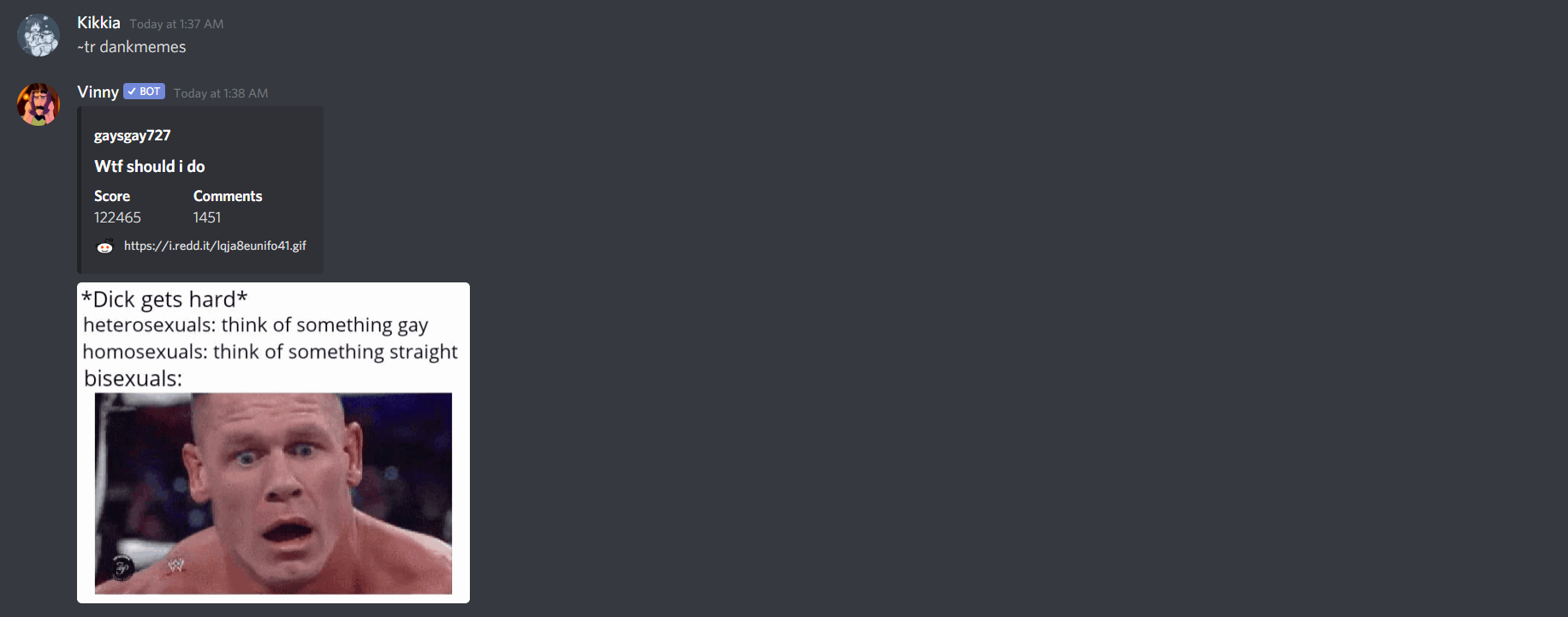 Very, very nice. First of all, Vinny is open-source. That's a huge win for any bot. Secondly, the music streaming is quite stable. No need for a dedicated bot just for music. Thirdly, lots of other fun commands (copypasta, clap, r34, etc.).