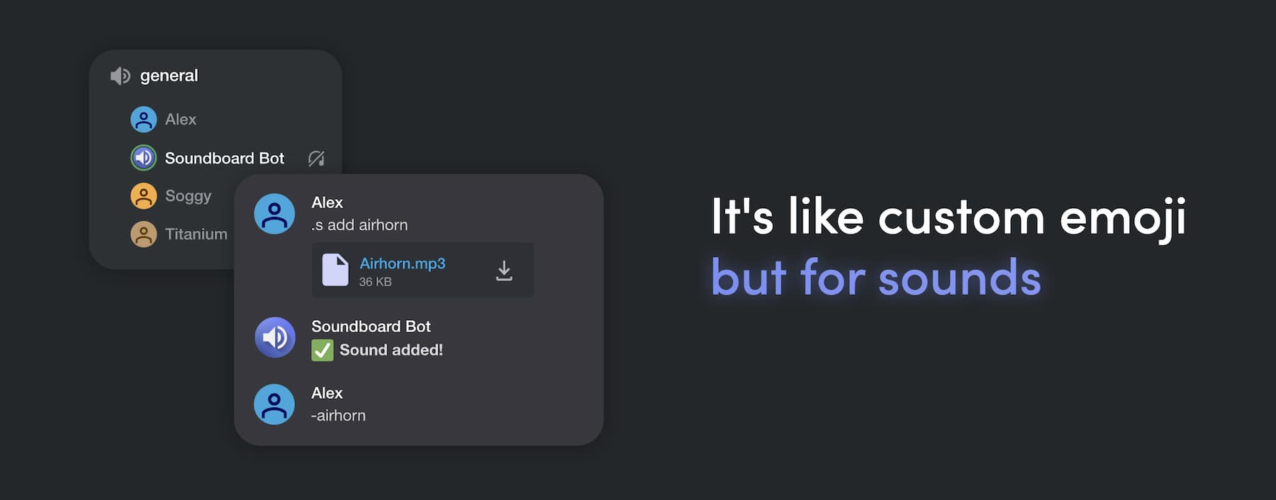 Create a custom soundboard for your server. It's like custom emoji but for sounds.