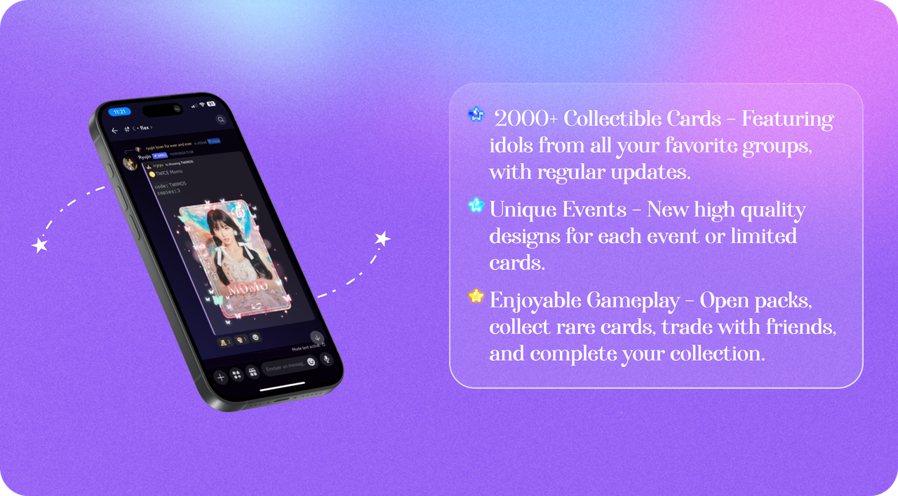 Best kpop card collection bot out there, friendly players and incredible community, been playing for almost two years and I love it