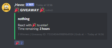 A giveaway can be started with an inputted: duration, amount of possible winners and the prize itself.