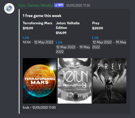 ЁЯОД Have Epic Game's free games selection sent every week as a single, clean, ad-free embed that's both pretty and functional. ЁЯОо