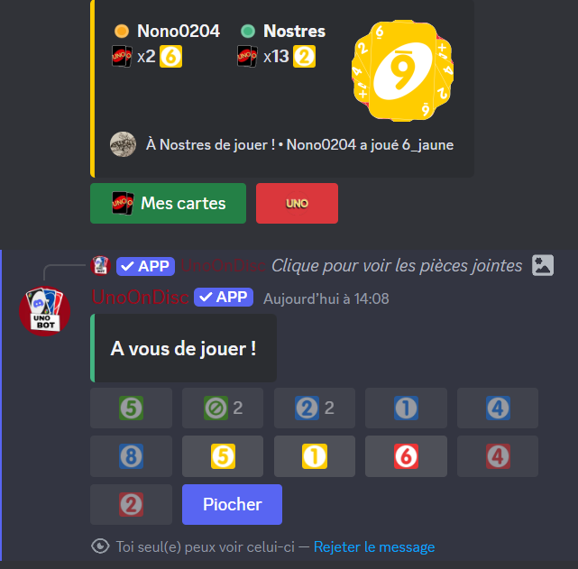Très très très bon bot pour jouer au UNO, il y a aucun bug! Vraiment je vous le recommande! ❤️