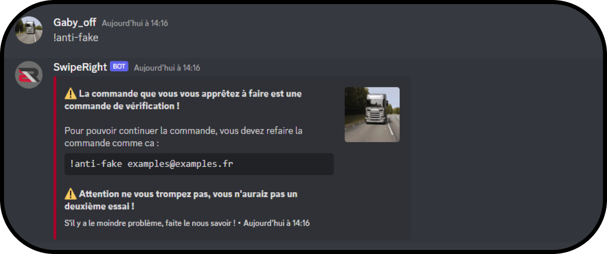 Une fois le profil crée et vérifie par nos staffs, vous pouvez débloquer de nouveaux avantages en fessant la commande !anti-fake