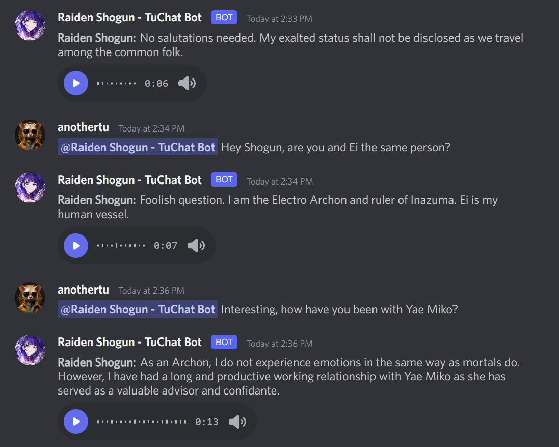 Advanced AI chatbot that brings talking characters from your favorite games & anime to your server.