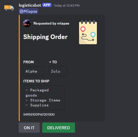 Simple and useful Bot for all your logistic requests! Each request is organized in a thread.