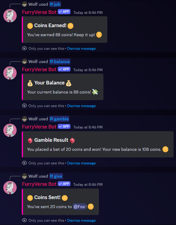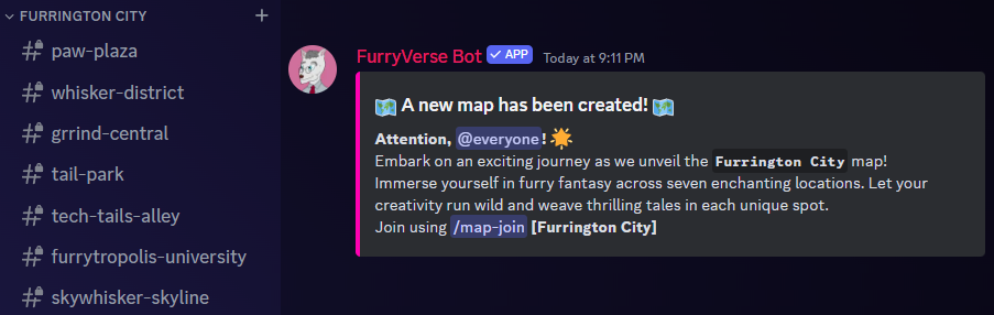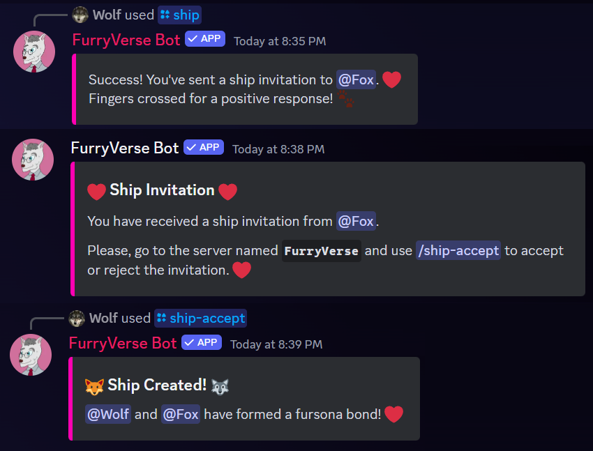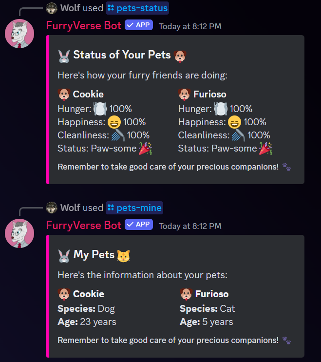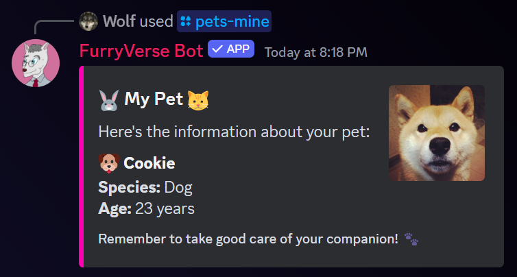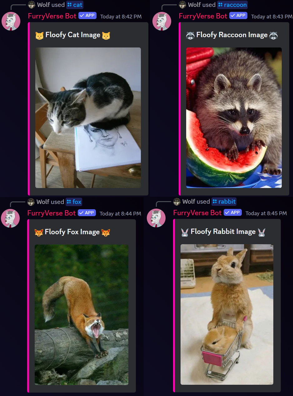 Invite FurryVerse Bot today and step into a realm of boundless creativity and furry adventures. Set your imagination free, care for your virtual pets, and enjoy a range of exciting commands. Your furry community eagerly awaits your presence!