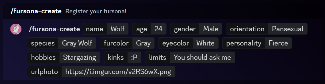 Please note that during fursona creation, the bot must have both the Manage Nicknames permission and a higher role position in order to change nicknames.