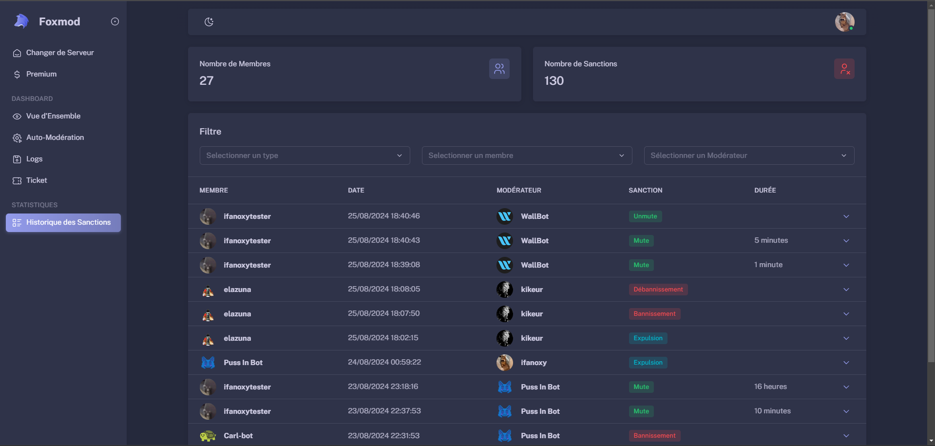 Découvrez l'outil ultime pour gérer votre serveur Discord avec facilité et précision. Notre bot offre une large gamme de fonctionnalités conçues pour améliorer la fonctionnalité de votre serveur et protéger votre communauté.