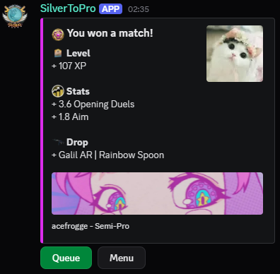 Play matches, get skin drops, improve your skills, and rank up — from Silver to Pro! A Counter-Strike 2 Minigame Bot