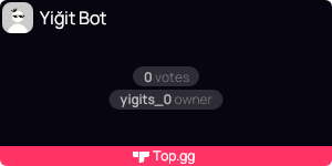 Yiğit Bot, her sunucunun ihtiyacı olan çok amaçlı bir Discord botudur! Kolay kullanımı, gelişmiş özellikleri ve sürekli güncellenen yapısıyla sunucunuzu daha eğlenceli ve düzenli hale getirir.