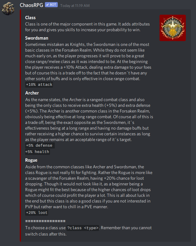 ⚔️ RPG bot with many functionality like battling the monsters ⚔️, duel⚔️, class system⚔️, skills⚔️ and many more⚔️