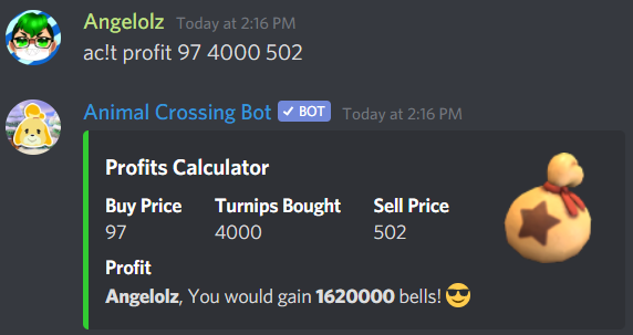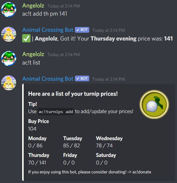 An AC:NH Bot that allows you to keep track/predict turnip prices, lookup in-game information, show info about you and your island, and more!