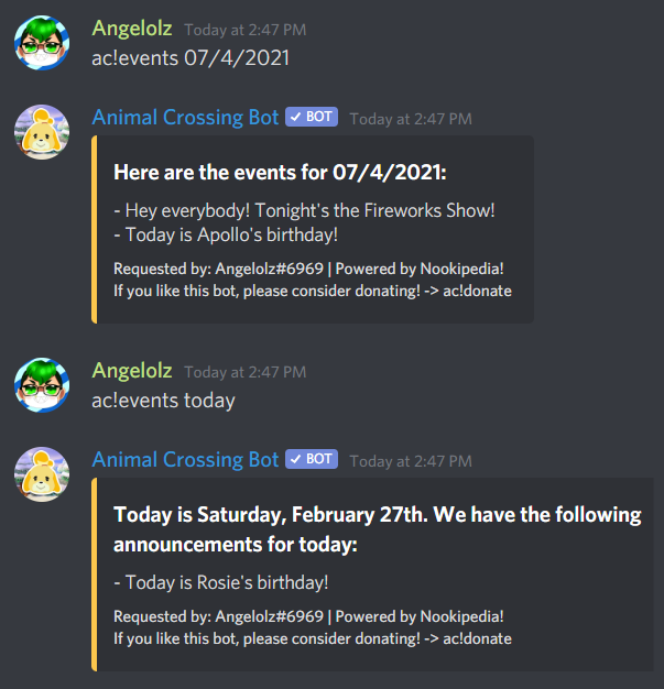 | ac!event | Look up any events happening on a certain day |
