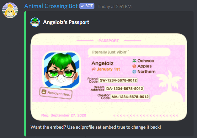 Shows your own AC:NH profile! |