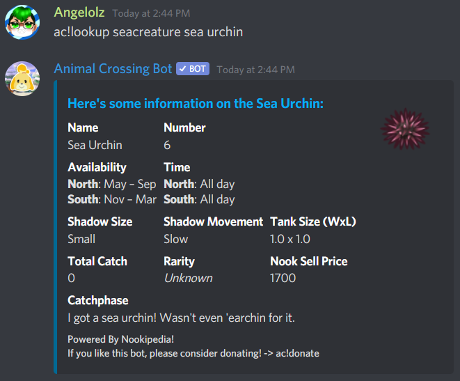 | ac!lookup | Lookup info on any villager, bug, fish, recipe and more! |