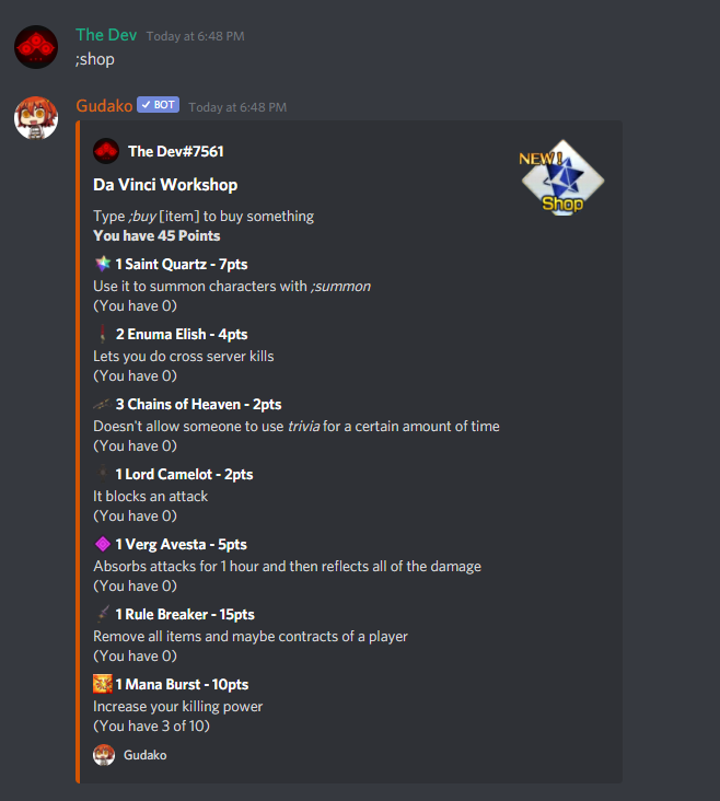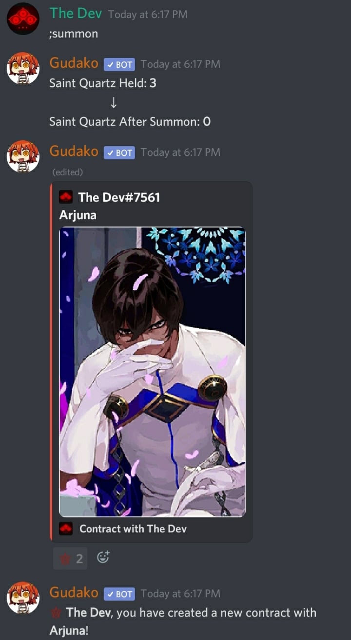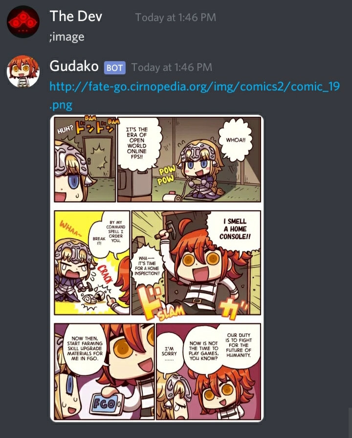 If you want to see all the commands you can type !help and Gudako will show an embed with all of them.