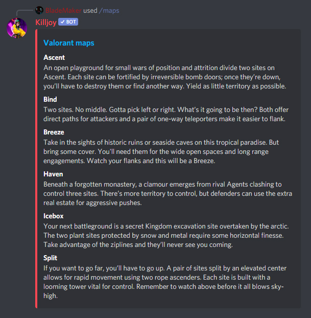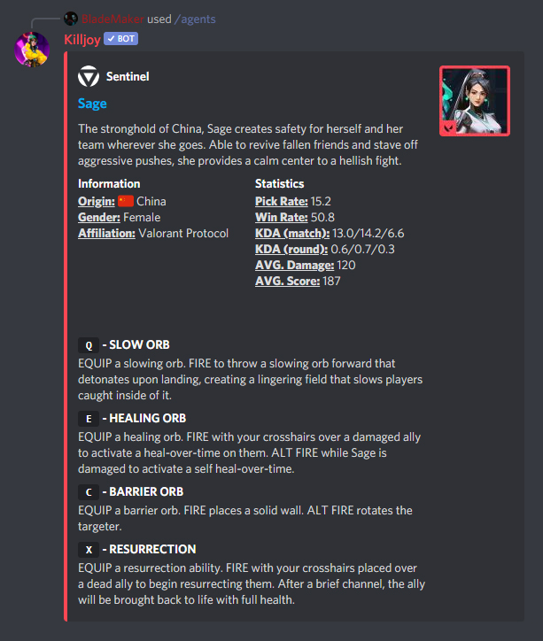 KILLJOY, apart from being your favorite Valorant agent, is also a fairly simple bot to use. Obtain information on all agents and more.