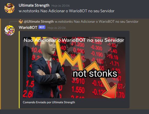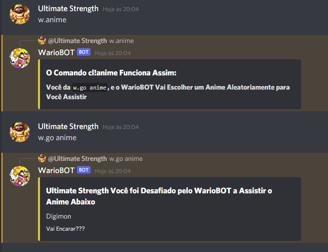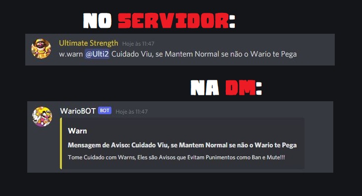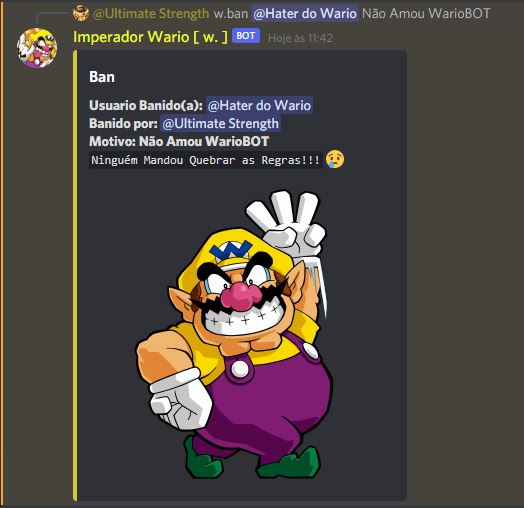 Voltando em Diversão o WarioBOT Possui Comandos Muito Engraçados que Prenderão Atenção do Usuário!!! (Exemplos Abaixo)