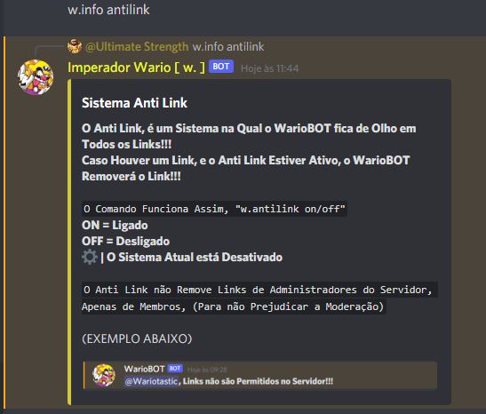 Tem AntiLink que Impossibilita os Usuários de Enviar Qualquer Tipo de Link, e Outros Comandos!!!