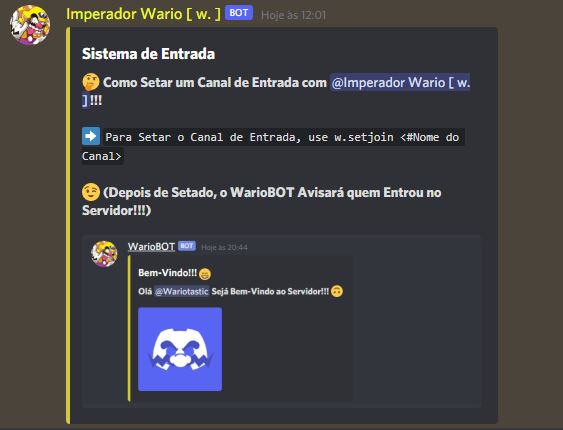 WarioBOT tem Sistema de Bem-Vindo Configurável!!!