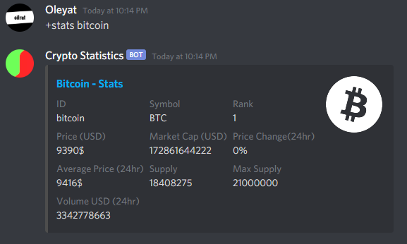 A work in progress crypto stats bot. This bot allows you to see the latest stats for a lot of crypto currencies!