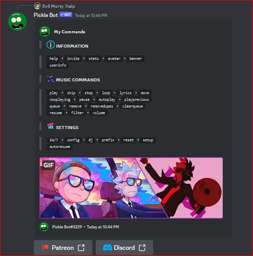 Pickle Music provides high quality music with 24/7 In voice channels, volume control, stage channels, filters and many more.