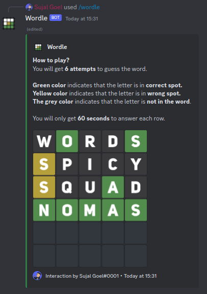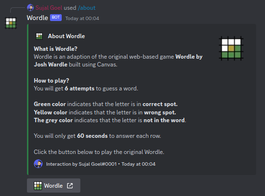 /about slash command to get more info./wordle slash command.